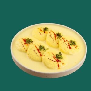 Soft paneer discs soaked in flavored saffron milk light, creamy, and rich.