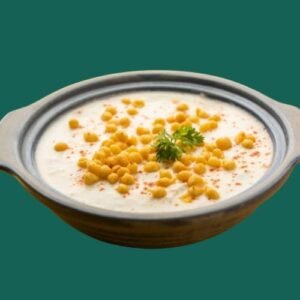 Curd mixed with crispy boondi, roasted cumin, and herbs – crunchy and flavorful.